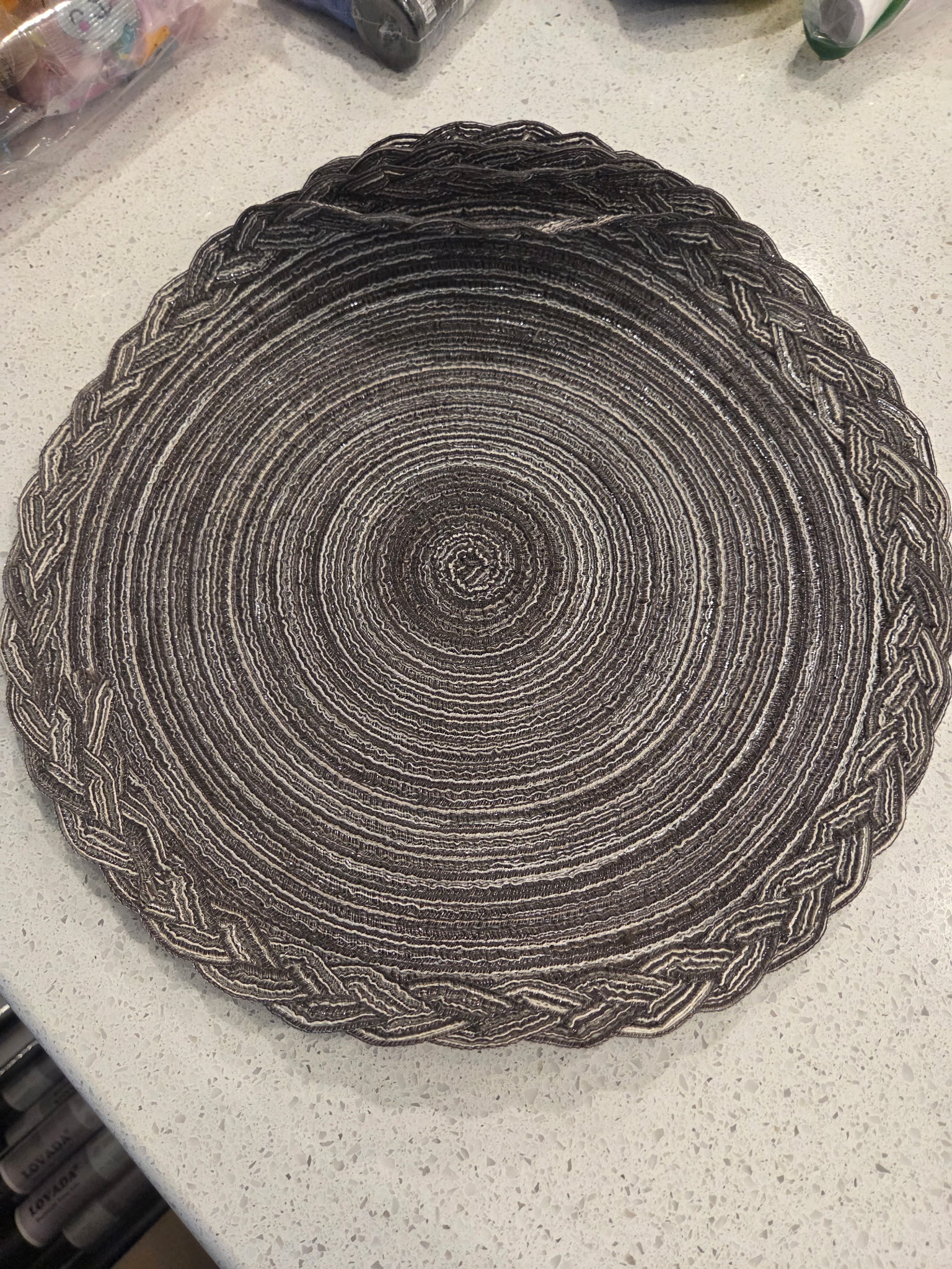 Featuring a braided circular pattern, these placemats offer timeless texture and visual appeal. The subtle grey hue complements a wide range of dinnerware, making them ideal for both casual family meals and formal gatherings.