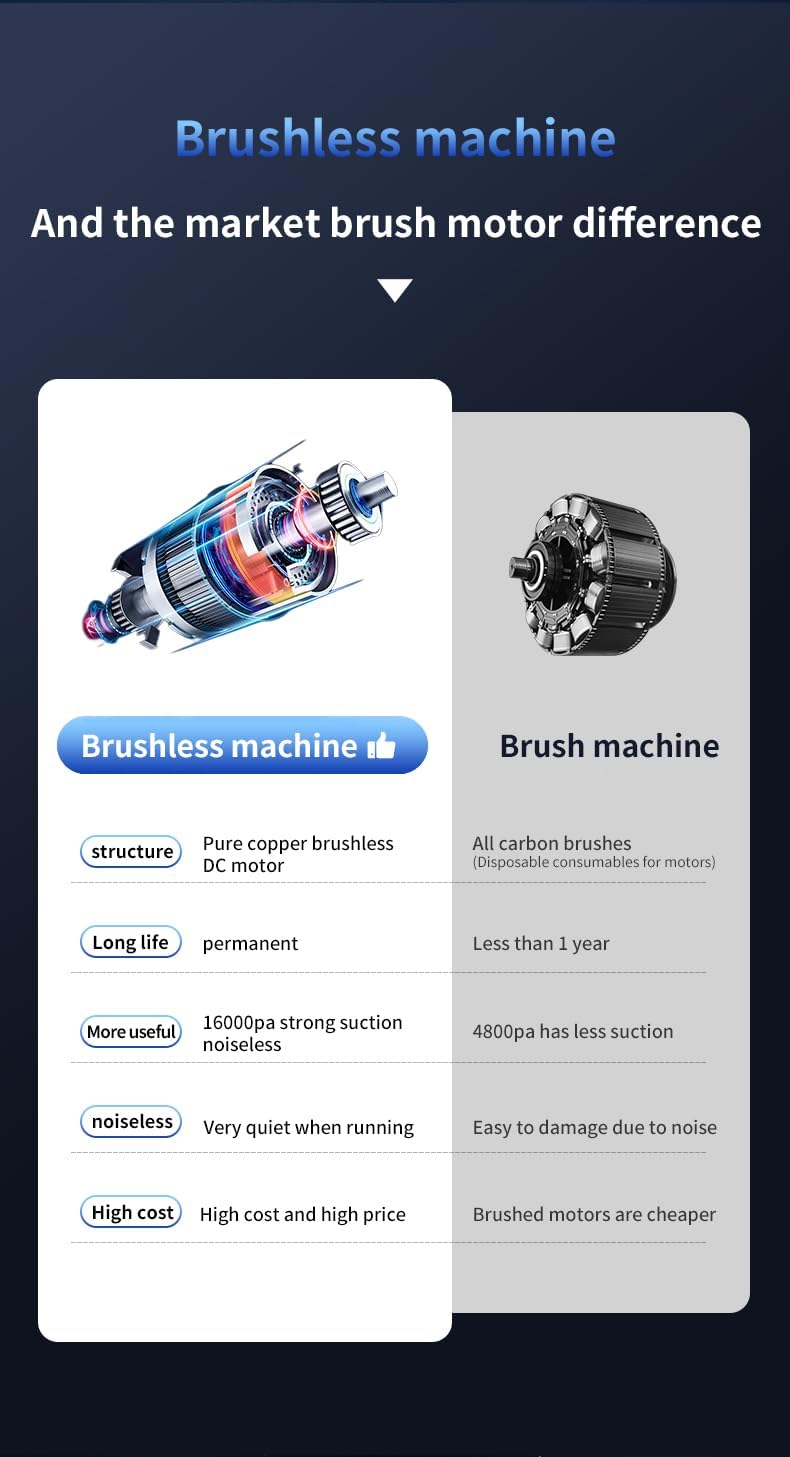 - ⚡【Brushless Motor And High Quality HEPA Filters】Waillynice 3-in-1 vacuum cleaner adopts brushless motor, which can run smoothly, prolong the service life of the machine and give you a better use experience. In addition, our vacuum cleaner is equipped with two HEPA filter elements, one of which is a fine steel filter element. The material is of high quality, not easy to damage, and can be used repeatedly.