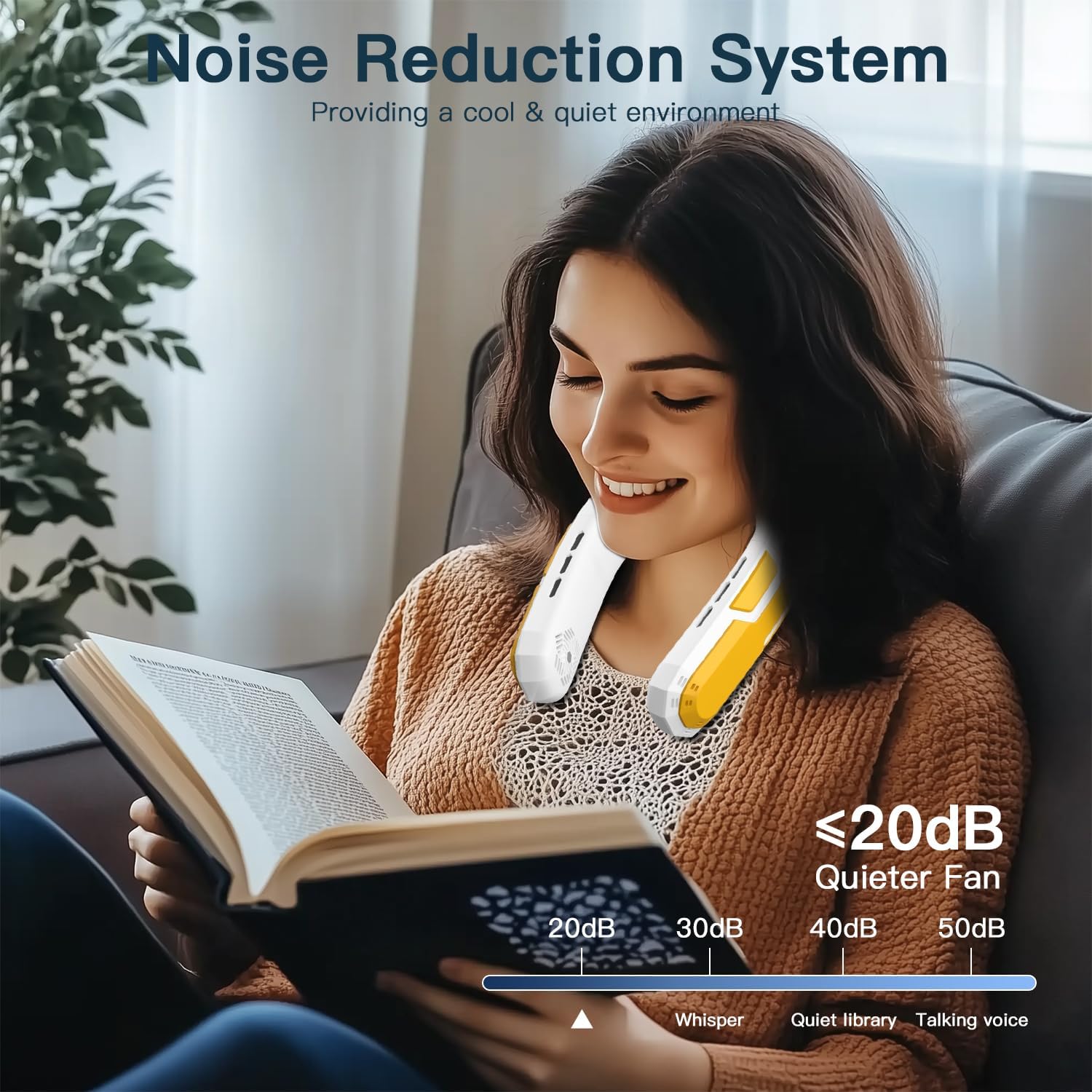 - 【Low Noise & Hands-Free Design With a double turbine design, it has an upgraded brushless silent motor. When it’s working, the noise level is below 25dB, It won’t disturb you when studying, working, sporting or traveling etc. giving you a quiet cooling experience. The cooling neck fan is designed to provide hands-free cooling, keeping you cool while engaging in various activities.