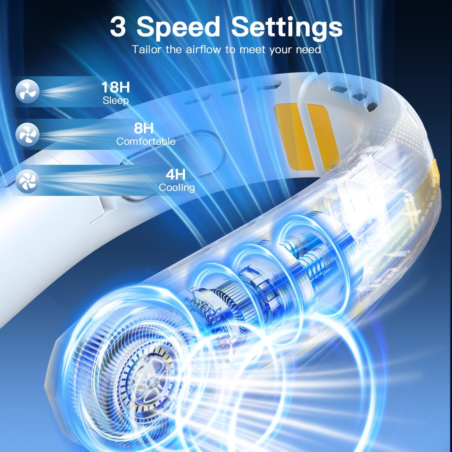 - Safety & 360° Powerful Airflow Upgraded Bladeless neck fan, do not worry about your hair getting caught, ensuring safe use for long hair people, children and the elderly. 360° airflow design, providing all-around cooling from every angle. Whether at home or outdoors, it delivers powerful and even airflow to keep you refreshed and comfortable.