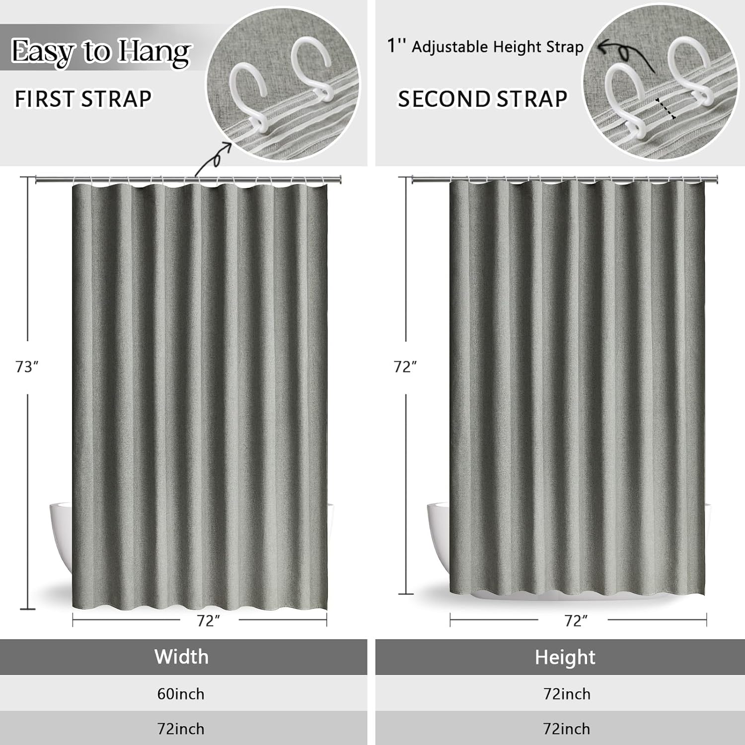 • Linen Texture Fabric: Crafted from premium 230GSM heavyweight polyester fabric, this grey shower curtain features a soft and durable linen-like texture. It is fade/tear/wrinkle-resistant.